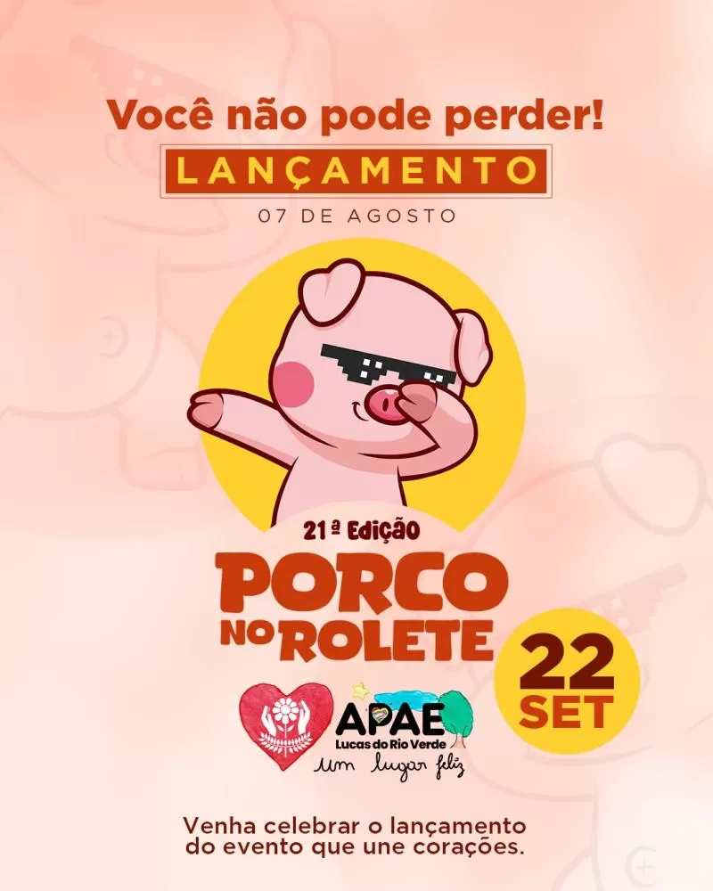 21ª Edição do Porco no Rolete: APAE lança tradicional evento beneficente em Lucas do Rio Verde