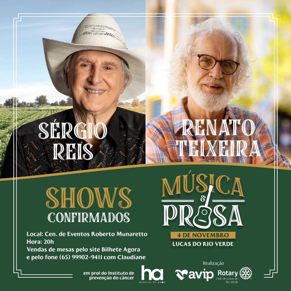 Música e Prosa: Lucas do Rio Verde terá shows beneficentes com Sérgio Reis e Renato Teixeira