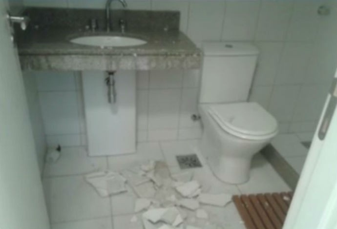 Até blocos de cimento foram encontrados dentro de ralos e vasos sanitários, mas Rio 2016 evita acusações formais. Atrasos de pagamento motivam o vandalismo.
