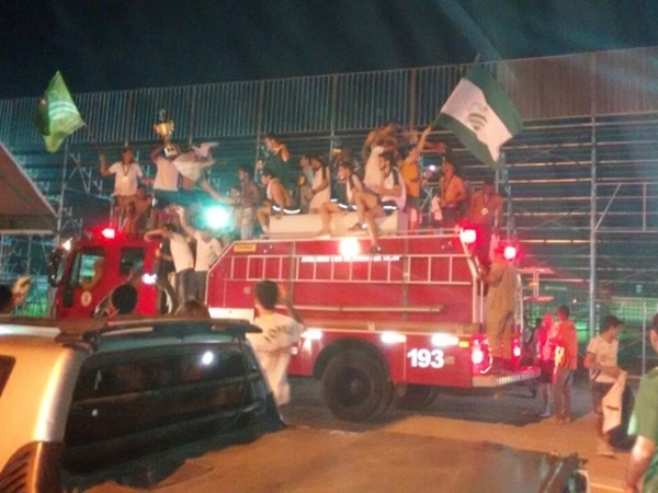 Verdão desfilou em caminhão dos bombeiros pelas ruas de Lucas do Rio Verde.