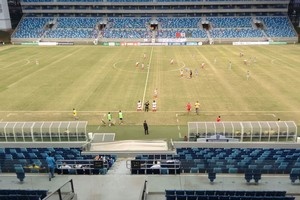 Tratamento ajuda, mas gramado da Arena Pantanal segue com visual ruim