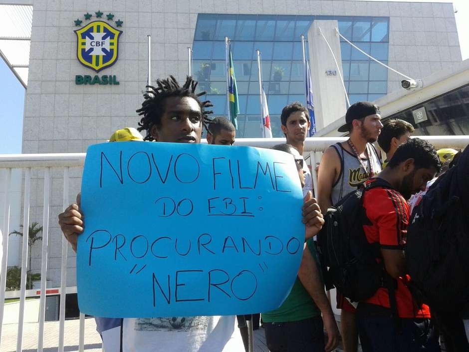 Ex-atletas e cerca de 50 torcedores denunciaram na tarde desta terça-feira o que chamaram de golpe da diretoria da CBF e exigiram a renúncia do presidente licenciado Marco Polo Del Nero.