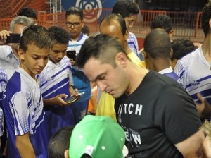 Craque esteve com crianças do projeto 'Mais que futsal' no Ginásio da UFMT.