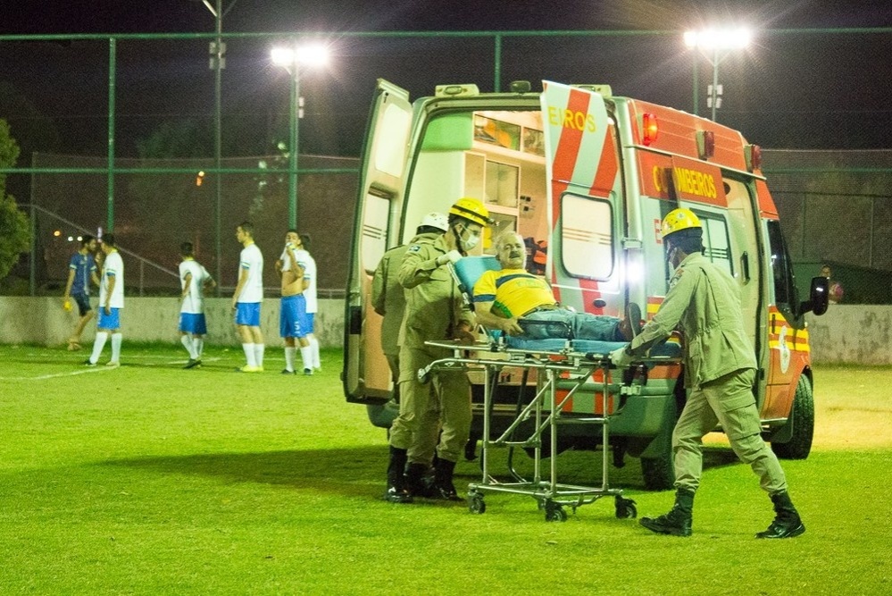 Valdir Doilho Wons, de 69 anos, teve um mal súbito e foi socorrido pelo Corpo de Bombeiros. Além de árbitro, ele era presidente do Nova Mutum Esporte Clube e participava de uma reunião antes da partida do time.