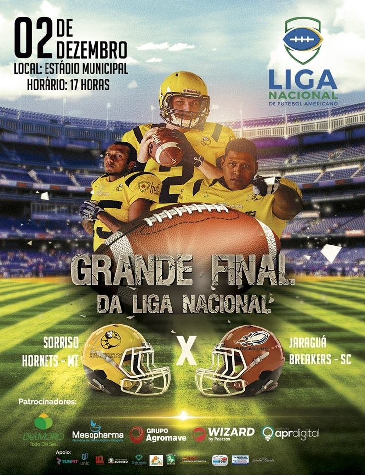 Sorriso Hornets enfrenta Jaraguá Breakers na final da Liga Nacional de Futebol Americano