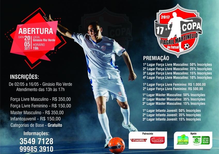 Inscrições para a 17ª Copa Fiagril/Martinello de Futsal estão abertas
