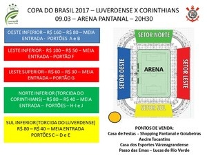 Luverdense x Corinthians: ingressos variam entre R$ 30 e R$ 160