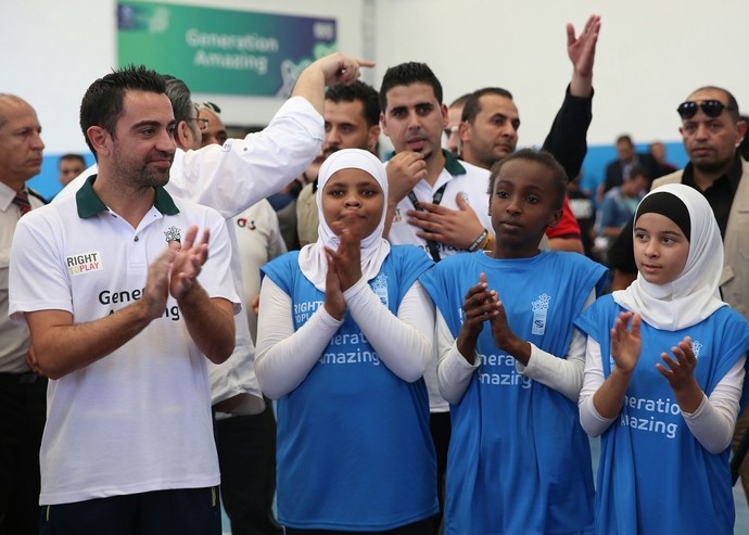 Xavi joga futebol com palestinos em campo de refugiados na Jordânia