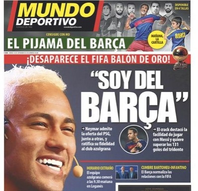 Escolha de Neymar pelo Barcelona ganha destaque nos jornais catalães