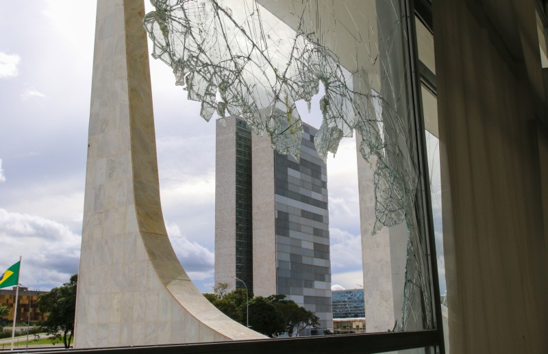 Bruno Spada/Câmara dos Deputados Vidros do Salão Negro do Congresso Nacional foram destruídos Relatório preliminar divulgado pela Câmara dos Depu...