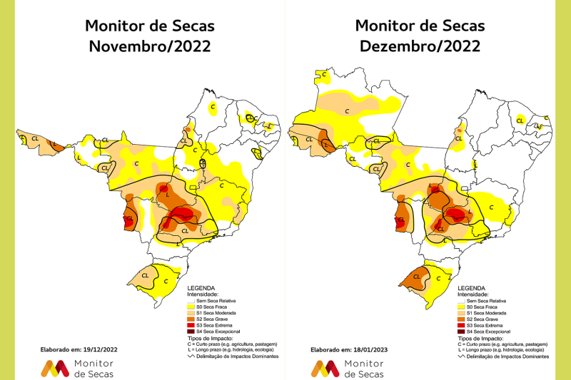 Entre novembro e dezembro, em termos de severidade da seca, somente o Rio Grande do Sul teve uma intensificação do fenômeno, conforme o Monitor d...