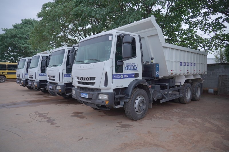 Quatro novos caminhões caçamba basculante passaram a integrar a frota da Prefeitura de Lucas do Rio Verde. Os veículos foram entregues pelo prefeit...