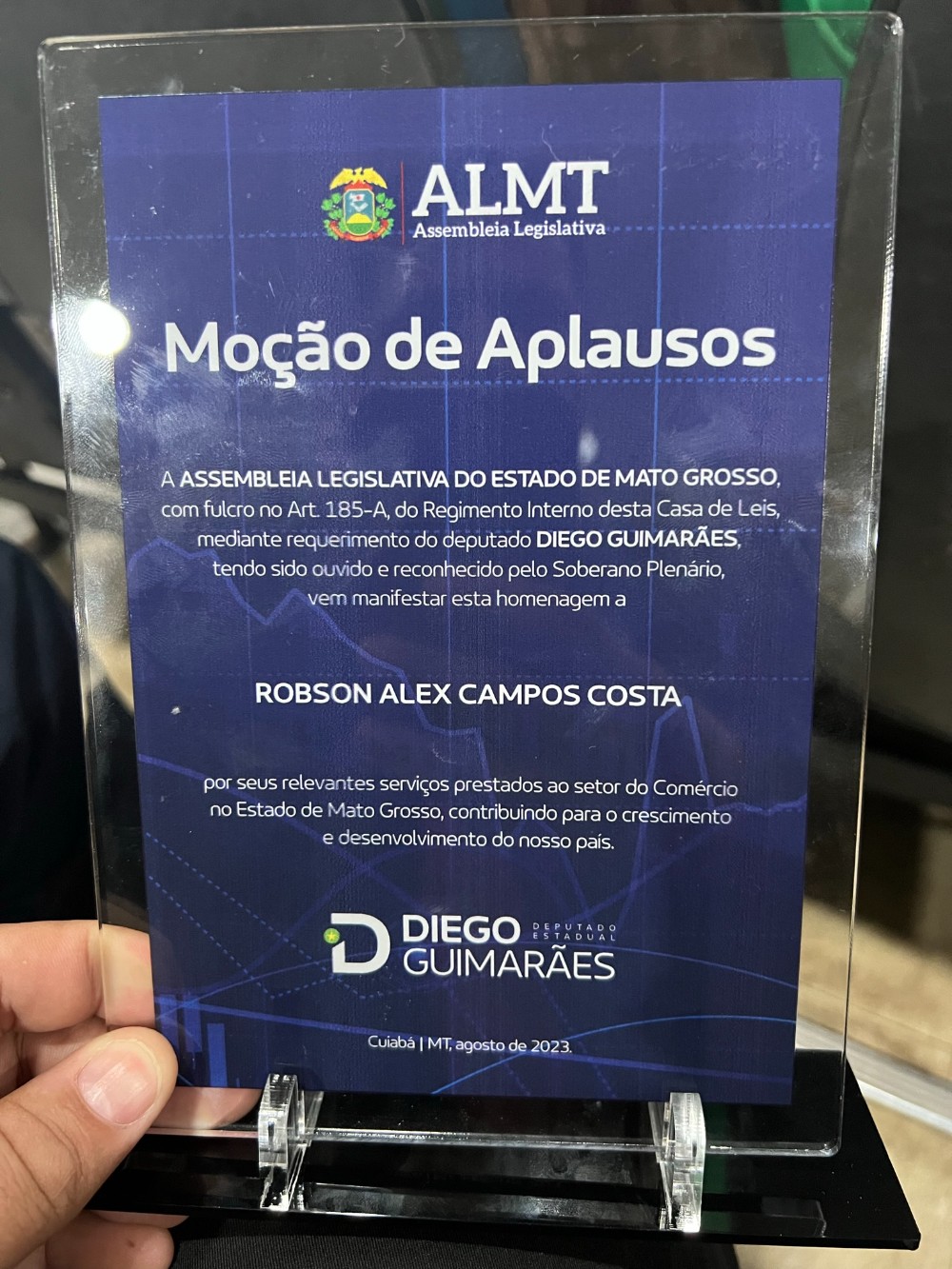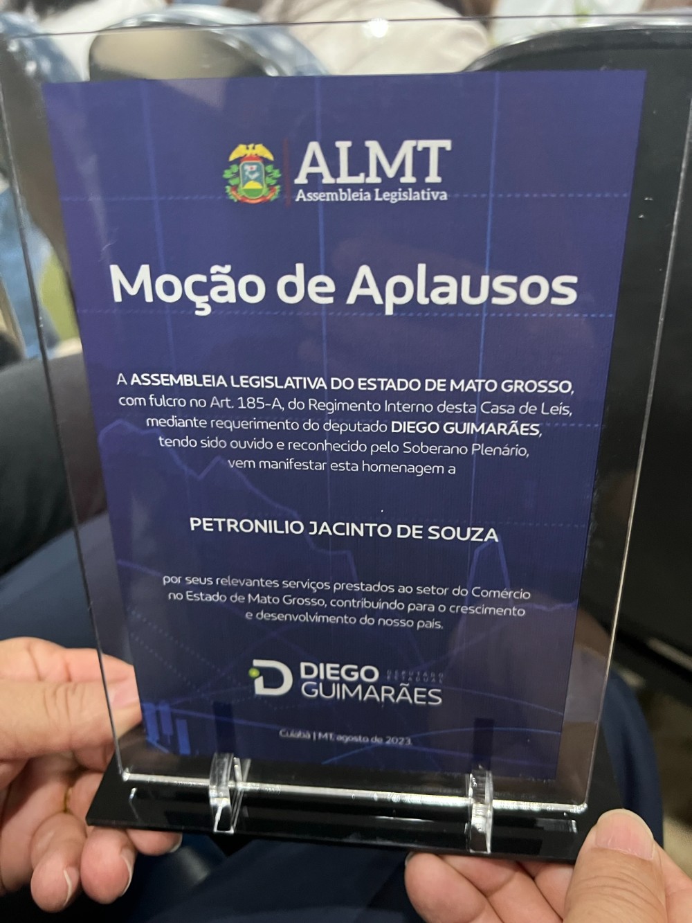 Em retribuição, a FCDL entregou ao deputado Diego Guimarães uma moção de aplausos “pelo significativo trabalho e apoio frente às políticas públicas no estado de Mato Grosso e expressiva contribuição para o fortalecimento dos setores de comércio e serviços”.