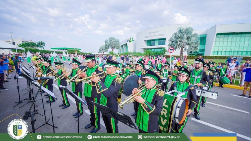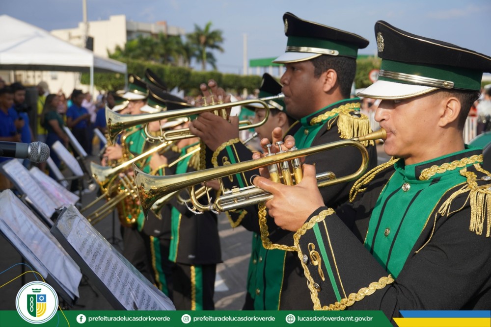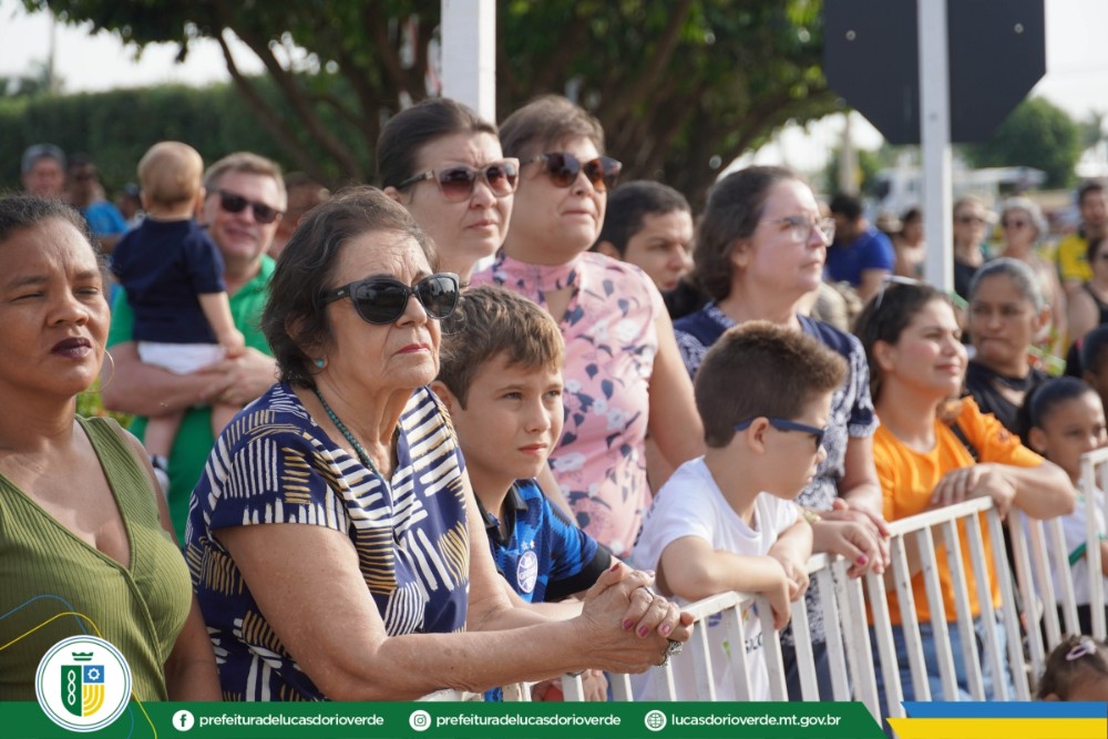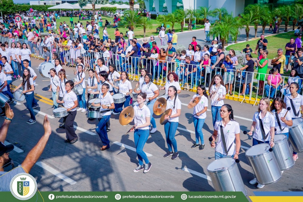Milhares de moradores luverdenses se reuniram na frente do Paço para prestigiar o desfile que contou com a participação da Banda Musical de Lucas do Rio Verde (Bamulv), conhecida também por Fanfarra do município, que guiou mais de 40 grupos, entre escolas, instituições, associações, forças de segurança e clubes de serviço.