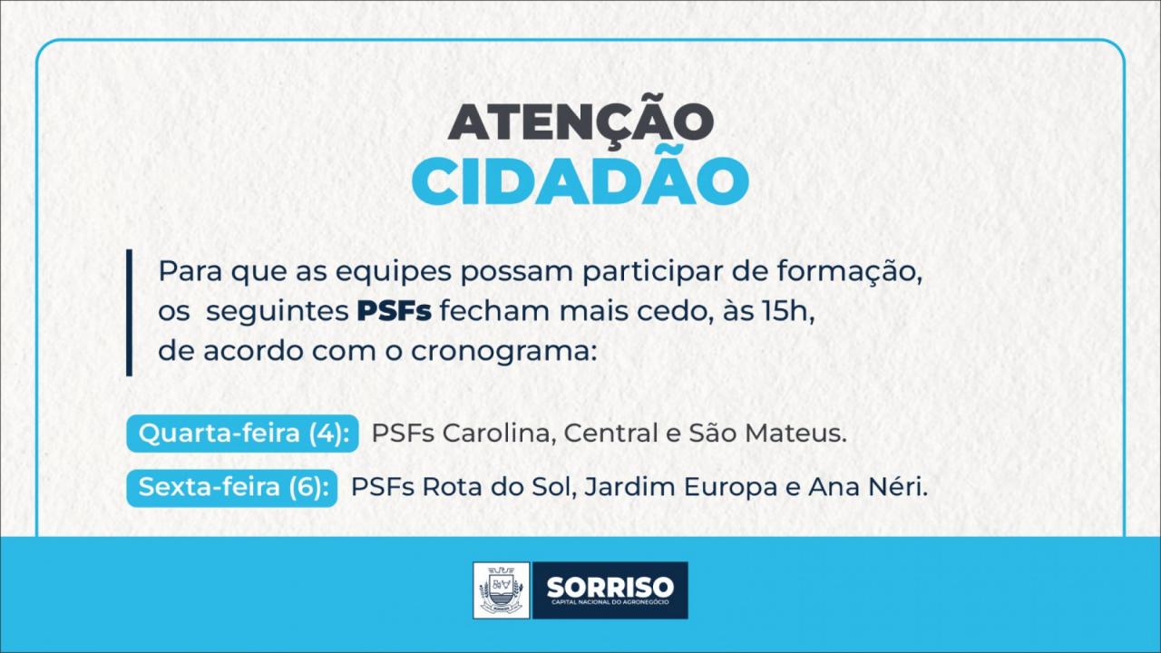 Para que as equipes possam desfrutar do momento de formação, os PSFs fecham mais cedo, às 15h, de acordo com o cronograma: