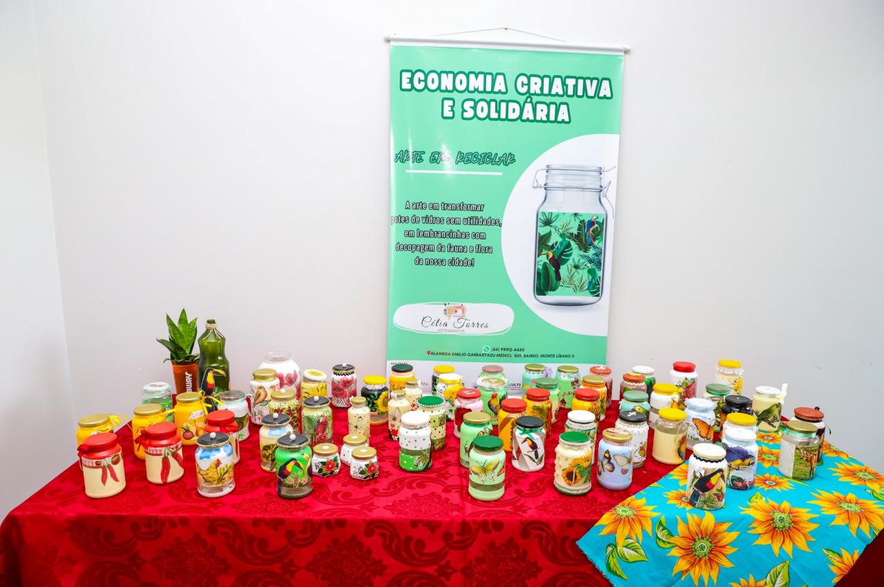 Via Promic, a artesã Célia Torres realiza a primeira edição projeto Arte em Reciclar, da Lei Paulo Gustavo, aprovada no edital Economia Criativa e Solidária, através da secretaria Municipal de Cultura Turismo e Juventude (Semcultj), que utiliza como base potes de vidro.