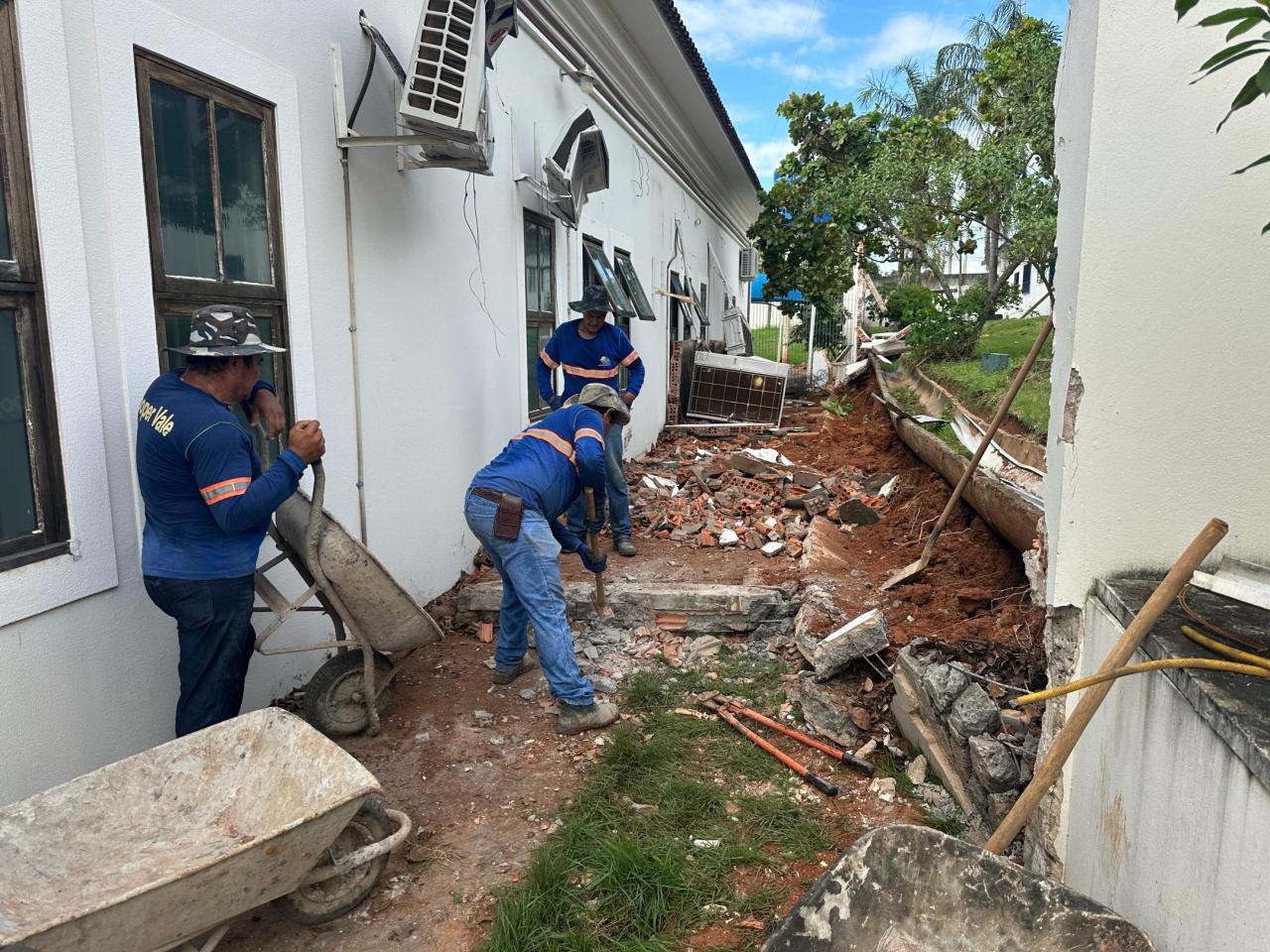 Todo o trabalho feito pelas equipes da Secretaria de Obras e Serviços Públicos (Semosp) está alinhado ao trabalho da Coordenação de Proteção e Defesa Civil (Compdec). Ações mais urgentes, como a reconstrução do muro que foi colocado abaixo com a chuva do dia 18.02, no bairro Jardim Amazônia, assim como o muro ao lado do Fórum, abalado pela chuva da madrugada de domingo (03.03), já estão sendo concluídas.