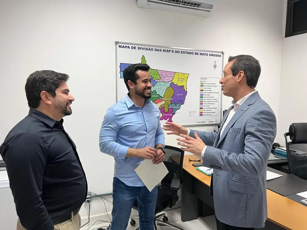 Além disso, o parlamentar também se encontrou com o secretário de Estado de Justiça, delegado Vitor Hugo Bruzulato Teixeira, para tratar da implantação do Núcleo de Operações com Cães (NOC) em Lucas do Rio Verde. A iniciativa tem como objetivo aprimorar ações de busca, apreensão e segurança no município, utilizando cães treinados para auxiliar em operações policiais.