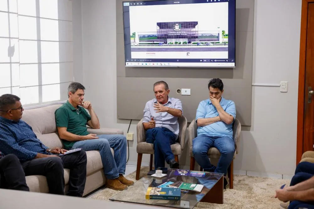 A diretoria da Fundação Rio Verde esteve na Câmara de Vereadores de Lucas do Rio Verde nesta quarta-feira (5) para uma reunião com os membros do Legislativo municipal. O encontro teve como objetivo apresentar as ações da Fundação e alinhar informações sobre a realização do Show Safra Mato Grosso, evento que acontece de 24 a 28 de março na sede da entidade e que se consolidou como um dos maiores do setor agropecuário no Brasil.