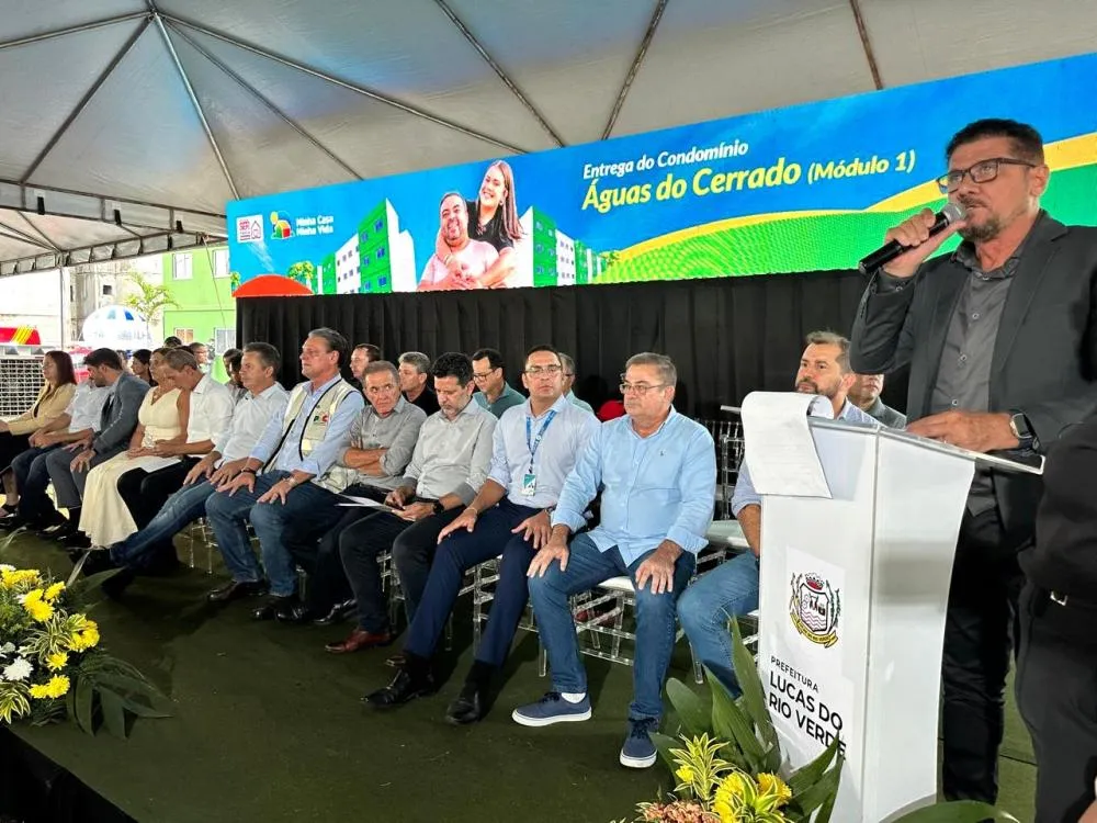 O segundo compromisso que os vereadores participaram foi da entrega de 192 apartamentos do condomínio Águas do Cerrado, de um total de 1.536 unidades. Esse é o primeiro projeto habitacional no formato vertical da cidade, sendo quatro condomínios, com cerca de 300 apartamentos cada, além de infraestrutura de lazer e segurança.