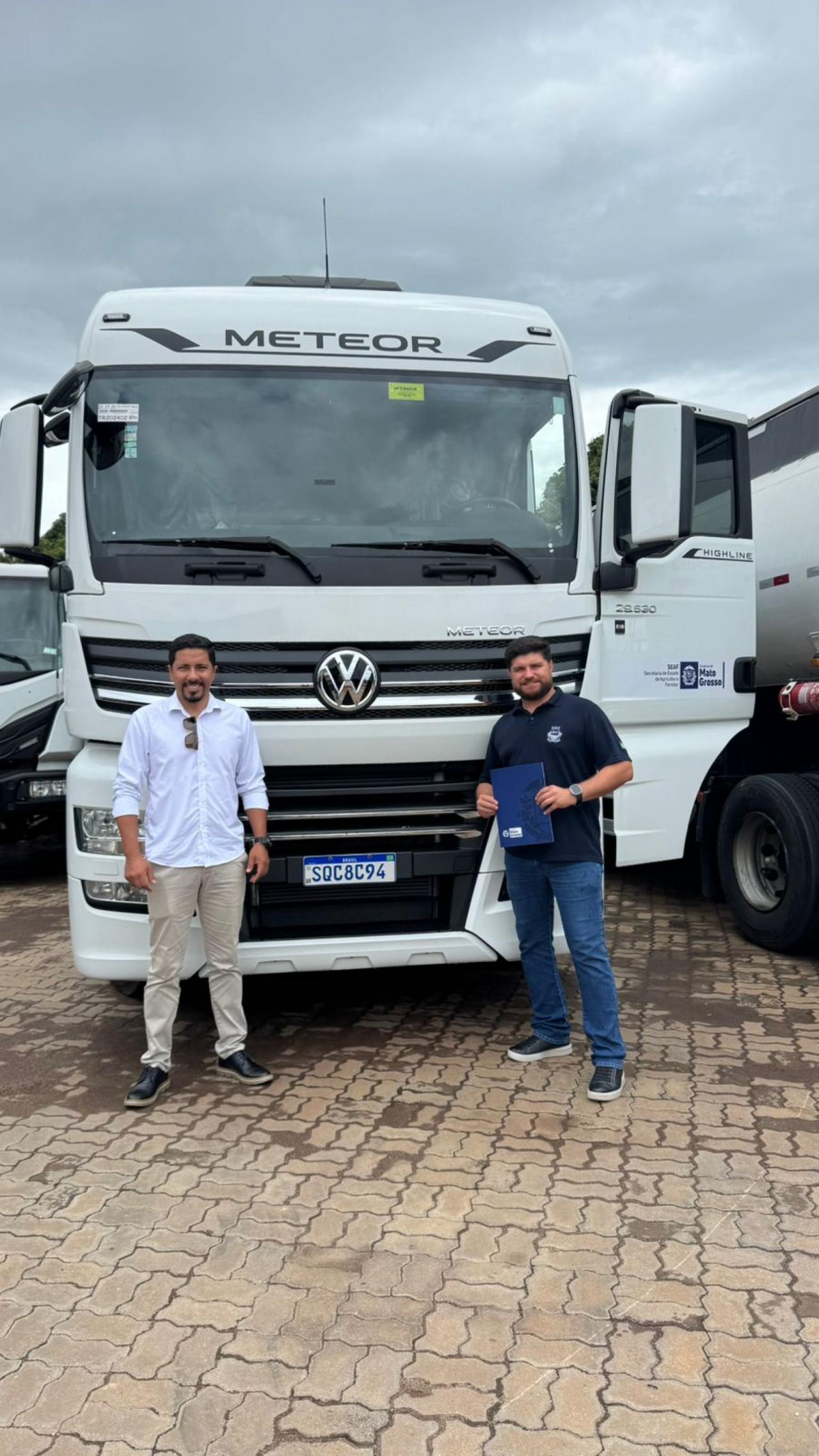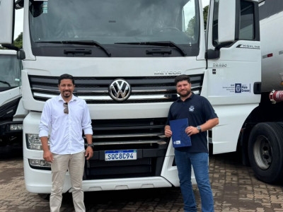 Junto ao presidente da Câmara de Sorriso, Rodrigo Matterazzi,  o  secretário municipal de Agricultura Familiar e Segurança Alimentar (Semasa), Lucas de Oliveira, recebeu oficialmente ontem (22 de dezembro), na capital do Estado, um caminhão, acompanhado de semirreboque, que terá como destino o atendimento de agricultores familiares sorrisenses.