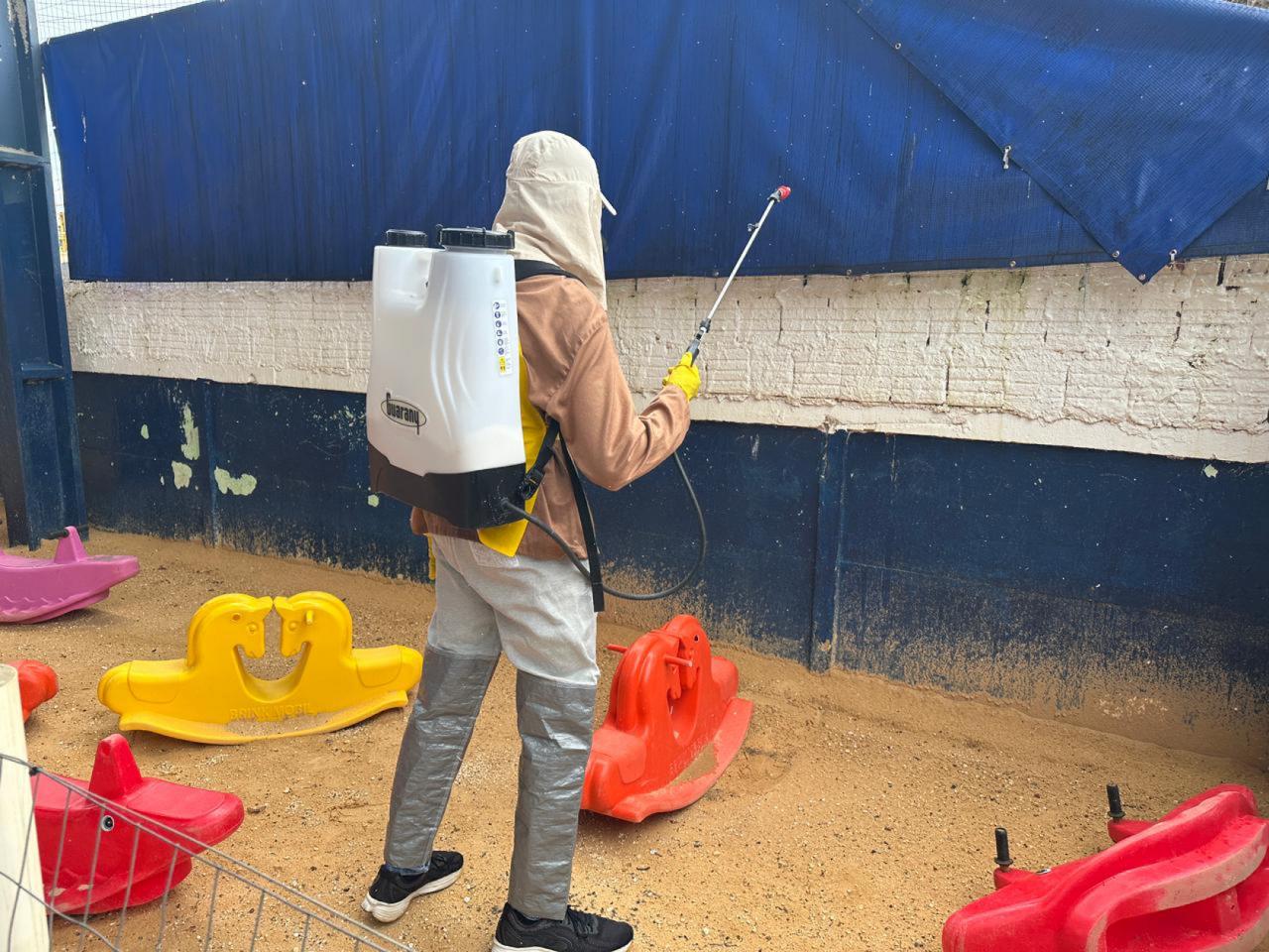 Entre as medidas adotadas está a aplicação da técnica deBorrifação Residual Intradomiciliar (BRI-Aedes), que está sendo realizada em escolas municipais e Centros Municipais de Educação Infantil (Cemeis), locais considerados estratégicos por concentrarem grande circulação de pessoas. Mesmo durante o período de recesso escolar, as equipes mantiveram o trabalho ativo, aproveitando a ausência de alunos para intensificar as ações preventivas. Até o momento, mais de 25 espaços públicos já receberam a aplicação.