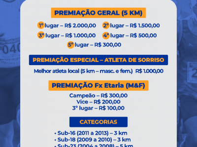 Melhor atleta local (5 km masculino e feminino): R$ 1.000,00