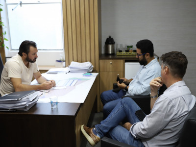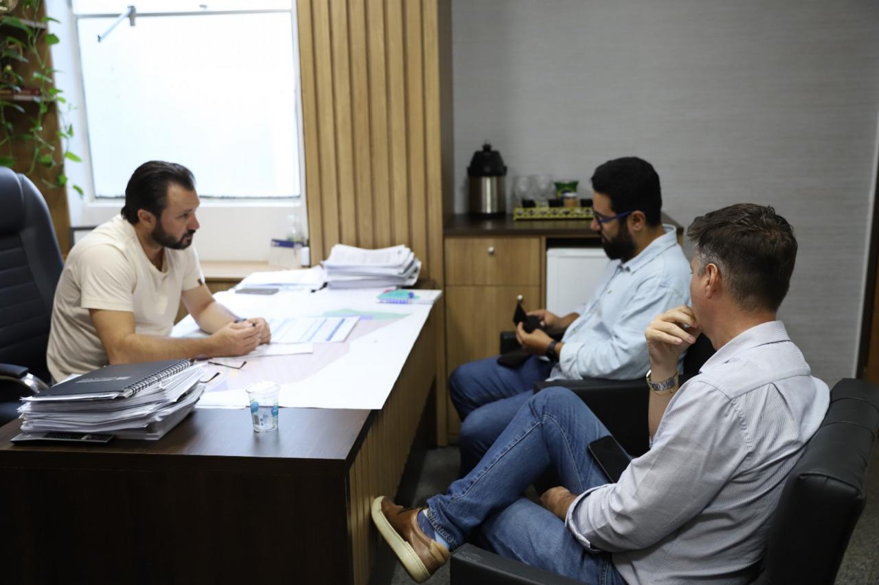 gerente de Operações da Águas de Sorriso, e Eduardo Lana, diretor-presidente da Águas de Sorriso. Junto ao secretário-adjunto de Governo, Cledson de Assis, o vice dialogou sobre a importância do alinhamento entre as equipes técnicas da Águas de Sorriso e da Administração Municipal, principalmente para que, logo após as obras de implantação da rede de esgotamento sanitário, já seja possível à Prefeitura fazer o recapeamento asfáltico daquelas vias.