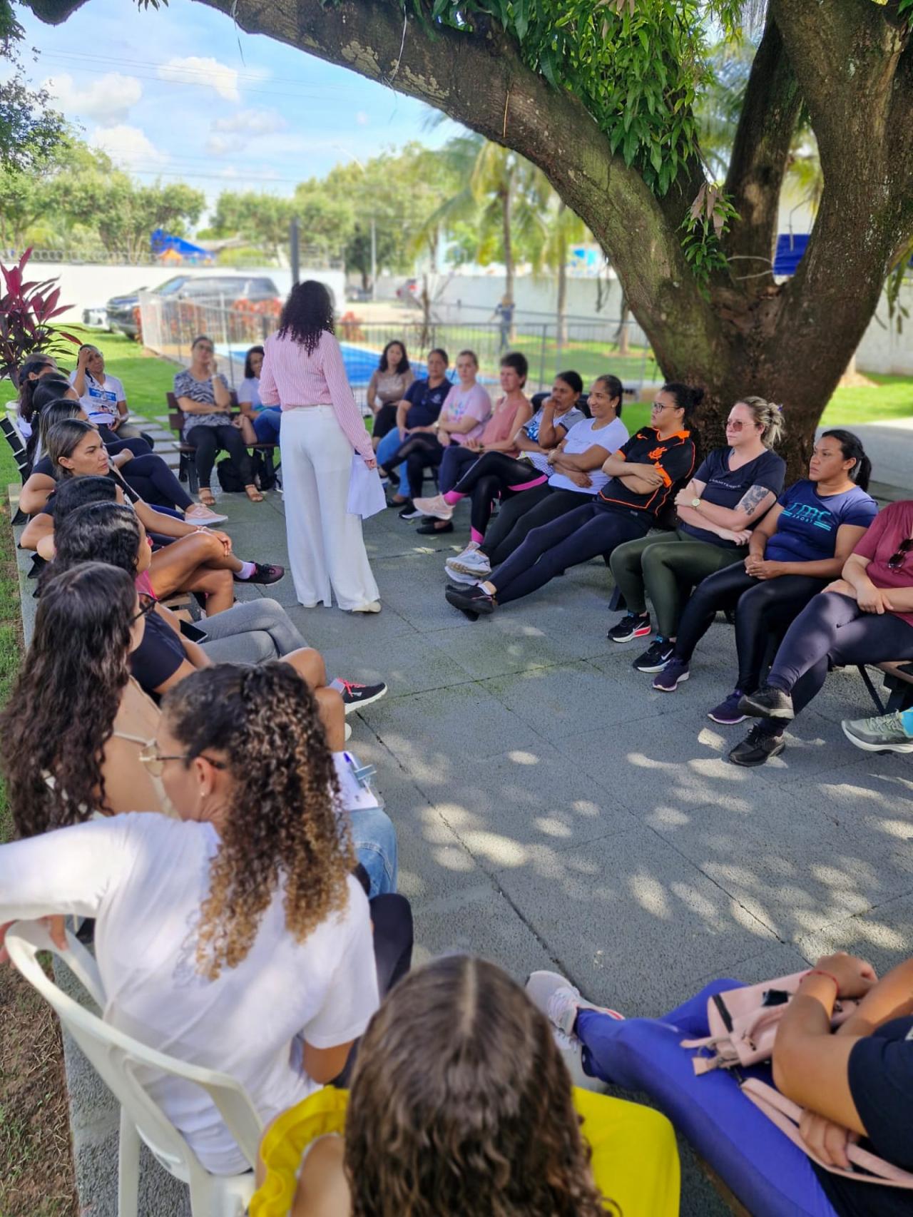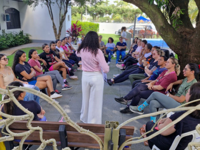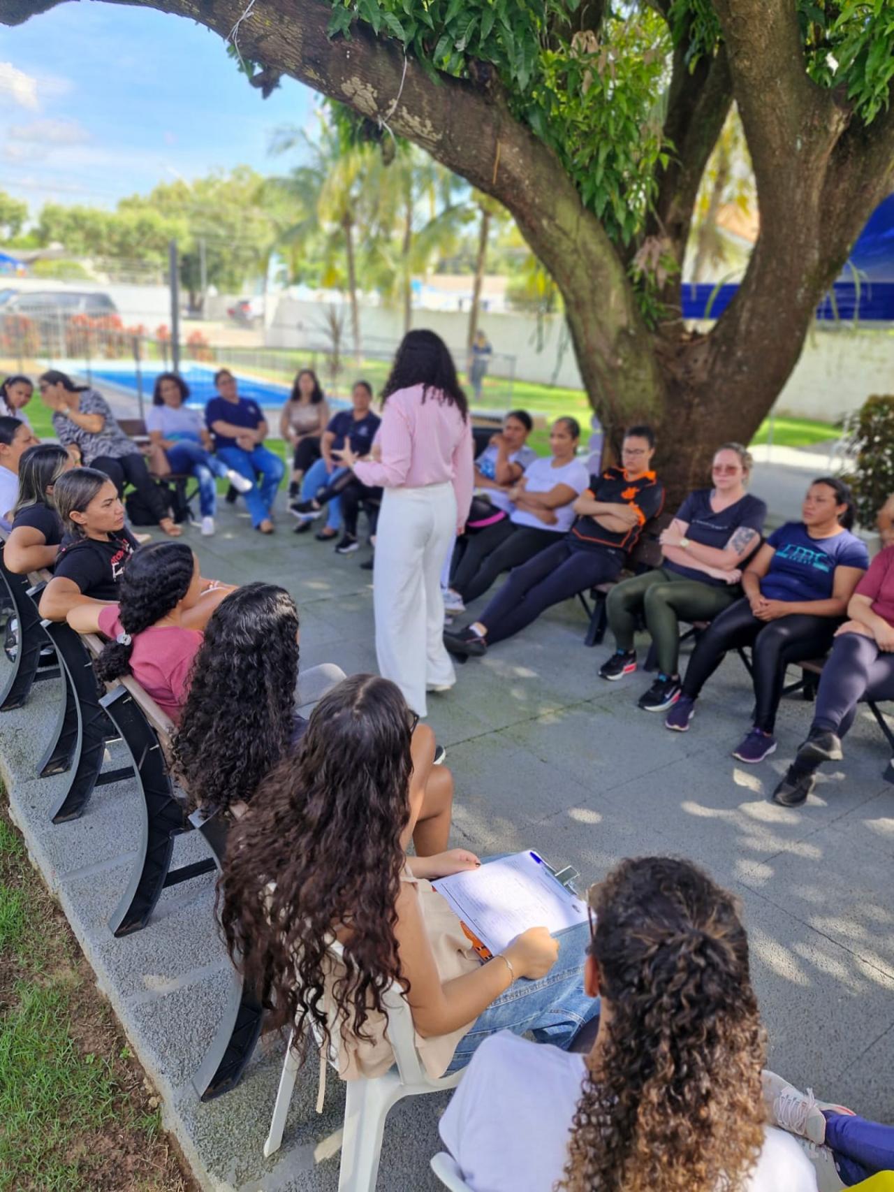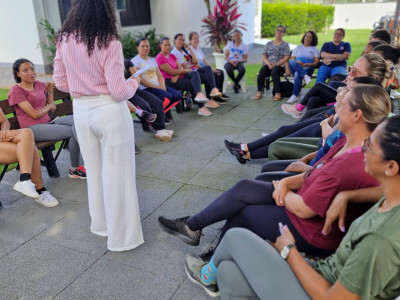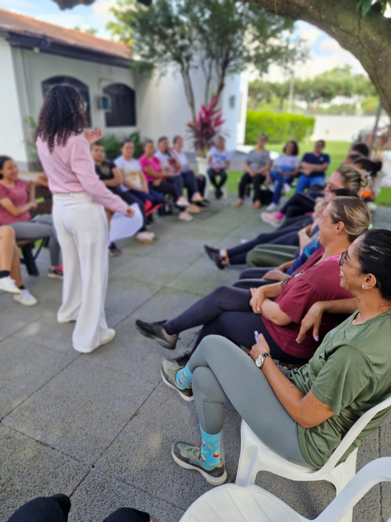 A programação começou com uma roda de conversa conduzida pela psicóloga Whaila Ribeiro, que abordou um tema muito presente na vida das mulheres: a autoestima e os desafios enfrentados no dia a dia. Durante a conversa, as participantes puderam falar sobre experiências e sentimentos relacionados aos diferentes papéis que exercem diariamente, tanto no trabalho quanto na vida pessoal.