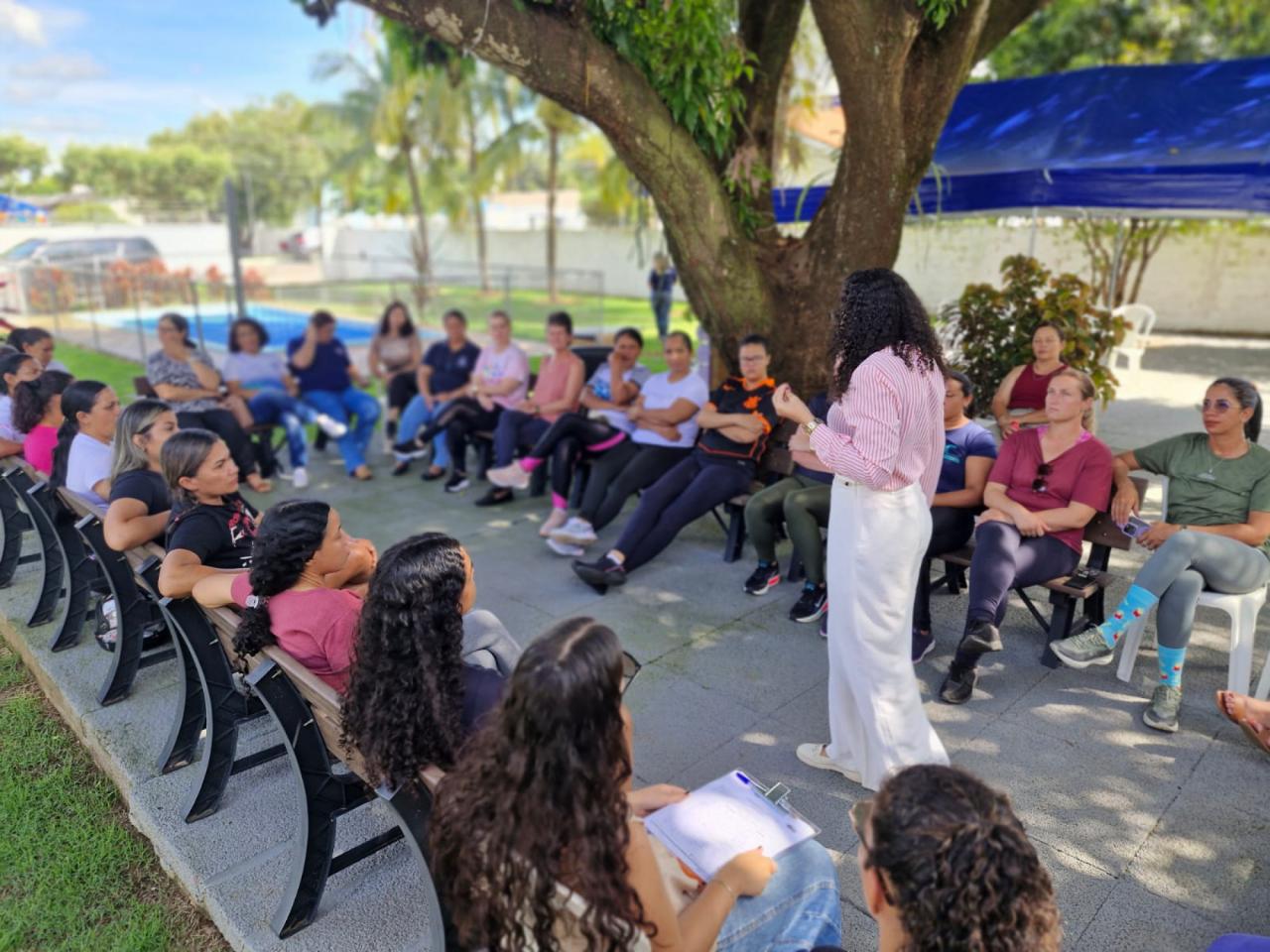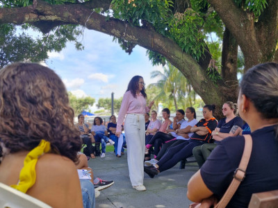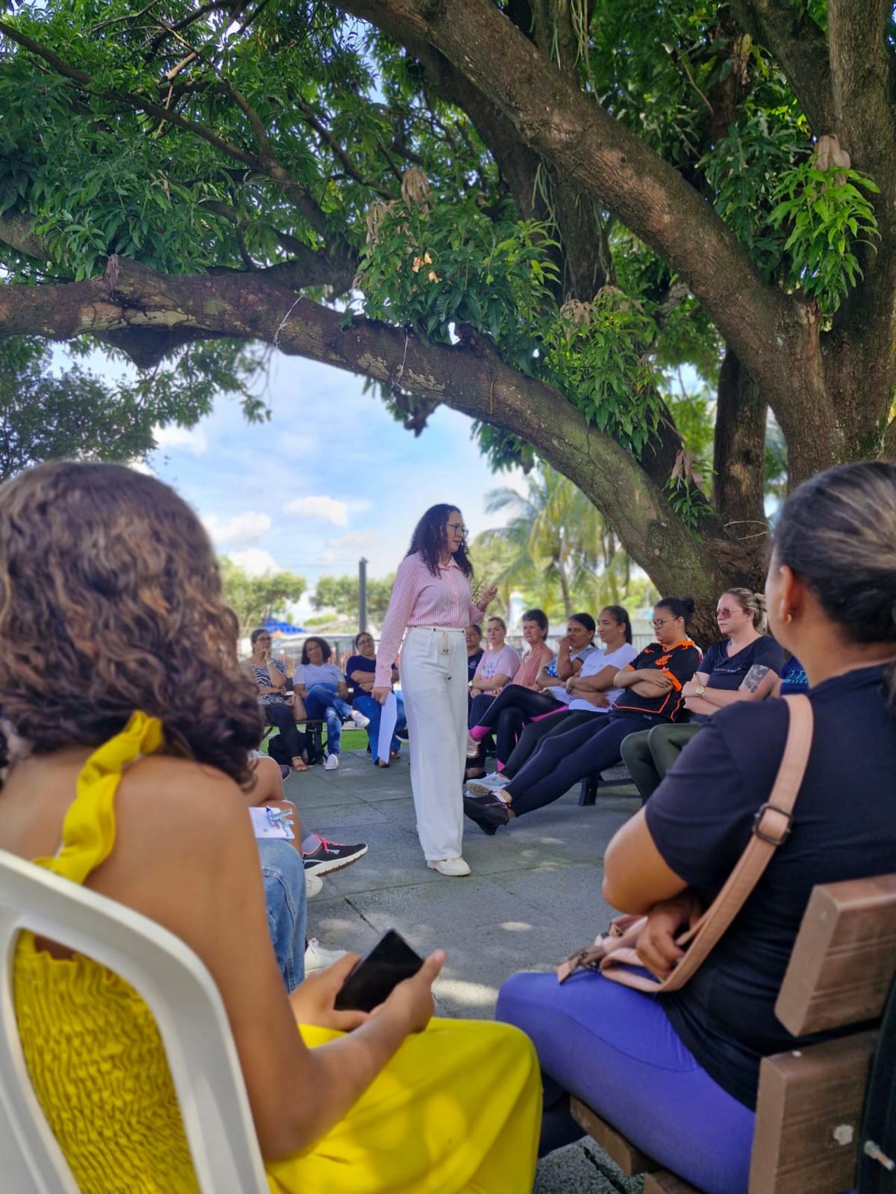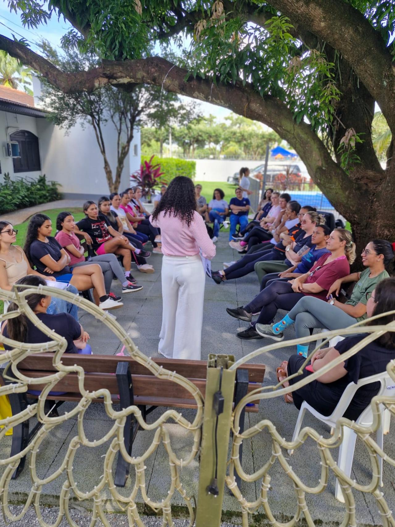 A programação começou com uma roda de conversa conduzida pela psicóloga Whaila Ribeiro, que abordou um tema muito presente na vida das mulheres: a autoestima e os desafios enfrentados no dia a dia. Durante a conversa, as participantes puderam falar sobre experiências e sentimentos relacionados aos diferentes papéis que exercem diariamente, tanto no trabalho quanto na vida pessoal.