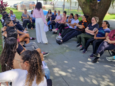 Além da roda de conversa, as participantes também participaram de um momento de alongamento conduzido pelo educador físico Thiago Paulino. A atividade reforçou a importância de cuidar do corpo e da saúde, mesmo em meio à rotina intensa de trabalho.
