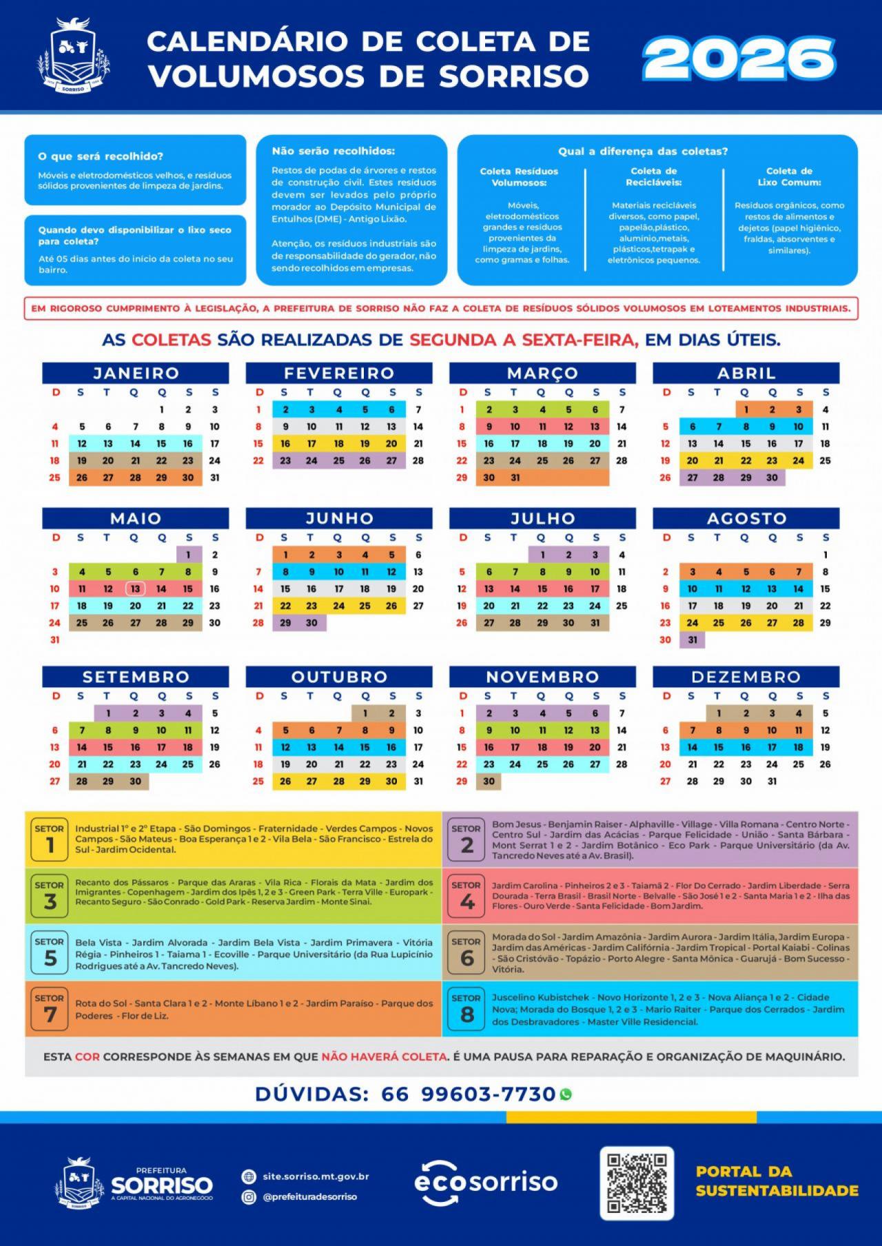 A partir do dia 22 de abril, as equipes da Sintra dão início à segunda rodada da coleta de volumosos, pelo Setor 1. O calendário pode ser conferido aqui.