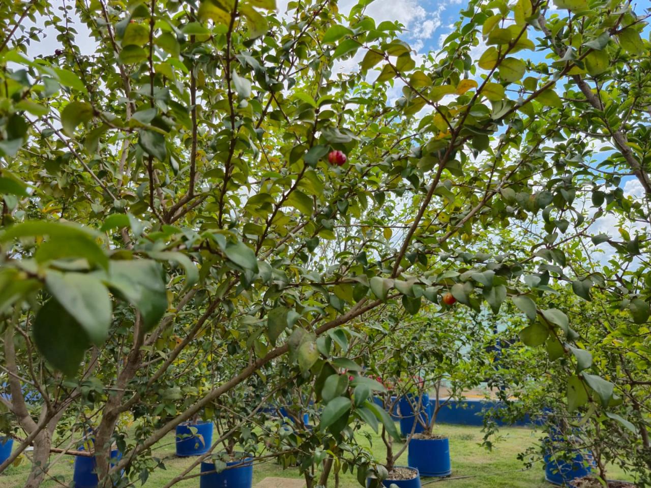 O pomar adaptado conta com acompanhamento contínuo, incluindo a manutenção dos vasos, irrigação, controle de pragas, registro de dados e monitoramento das condições de crescimento das plantas, além da