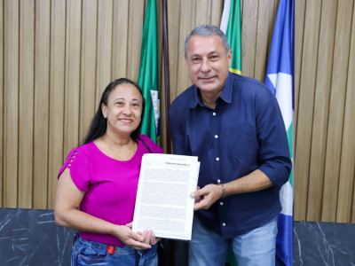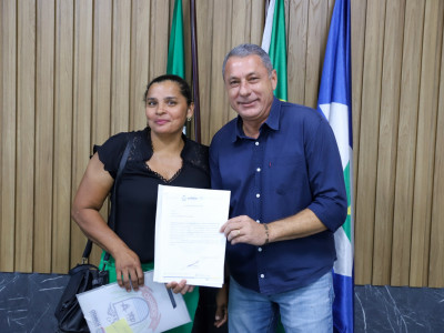 Auzirene Fátima de Oliveira é empregada doméstica e há 14 anos mora no Bairro São José I. Na manhã desta segunda-feira (27 de abril), ela veio à Prefeitura para receber a autorização para fazer a escritura da casa onde mora. Radiante, ela destaca a importância deste documento.  “Graças a Deus consegui este documento, que eu aguardava já há muito tempo”, declarou.