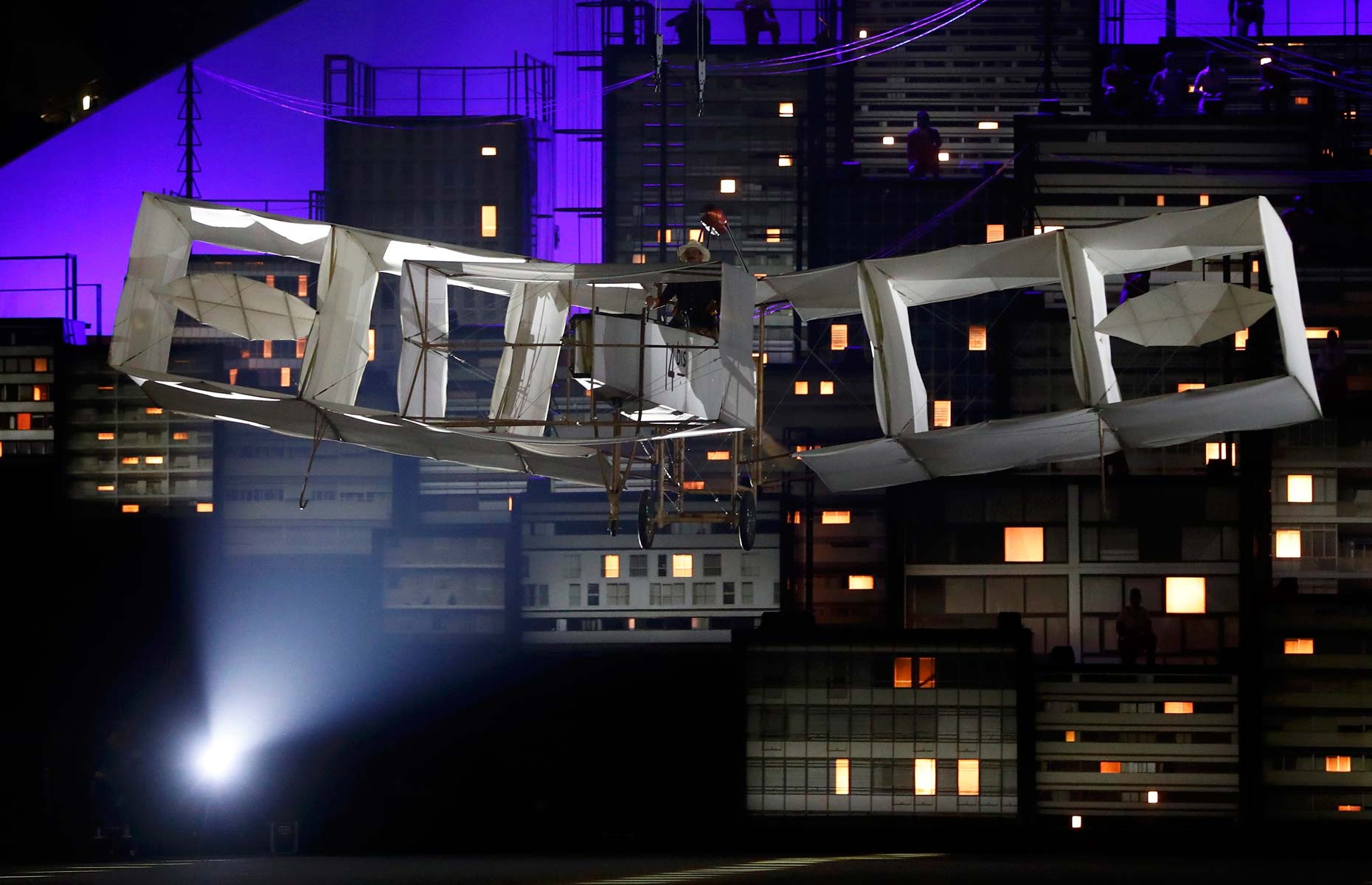 O 14-bis, invenção inovadora de Santos Dumont na aviação, também foi lembrado na cerimônia.