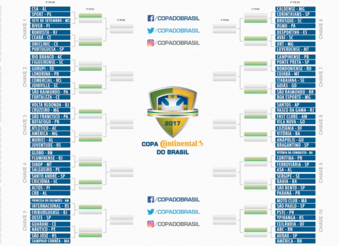 * A Copa do Brasil vai começar dia 8 de fevereiro e terminará no dia 12 de outubro;