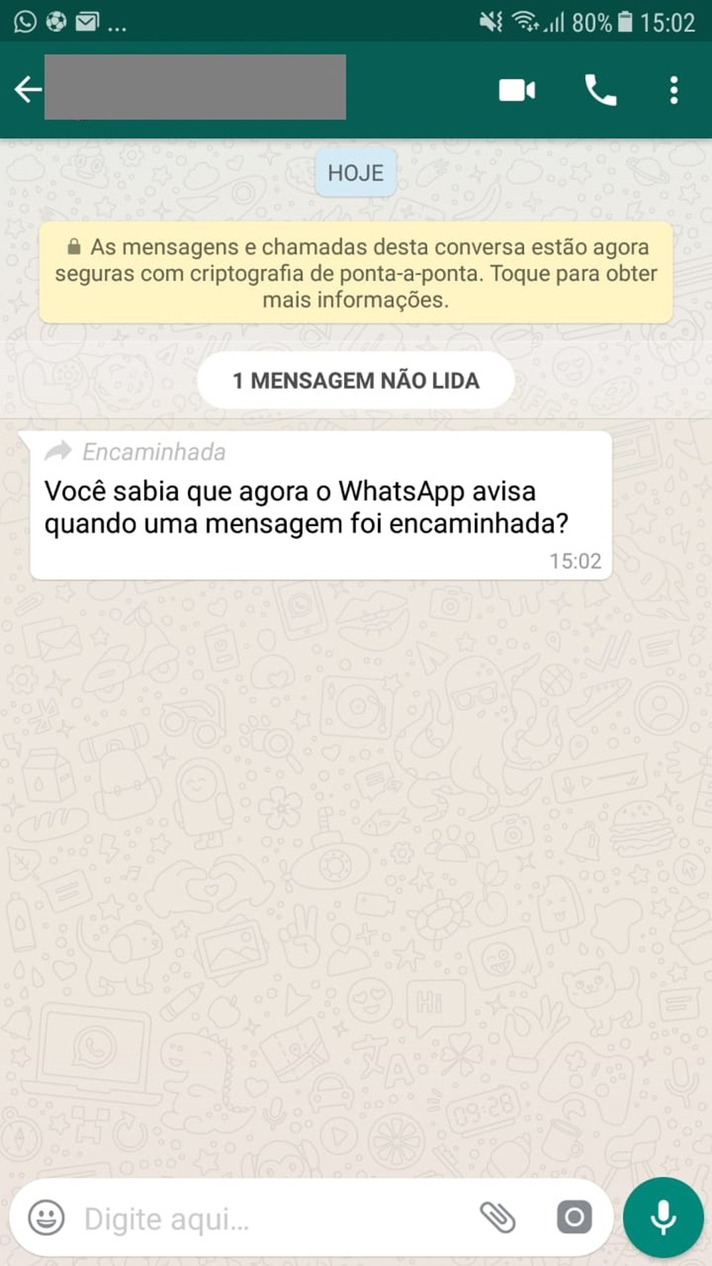 Em julho passado, o WhatsApp passou a avisar quando uma mensagem recebida se tratava de algo encaminhado pelo remetente.