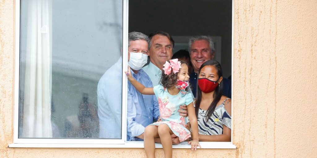 O presidente Jair Bolsonaro participou hoje (13) de uma cerimônia de entrega de 500 casas populares do Resid...