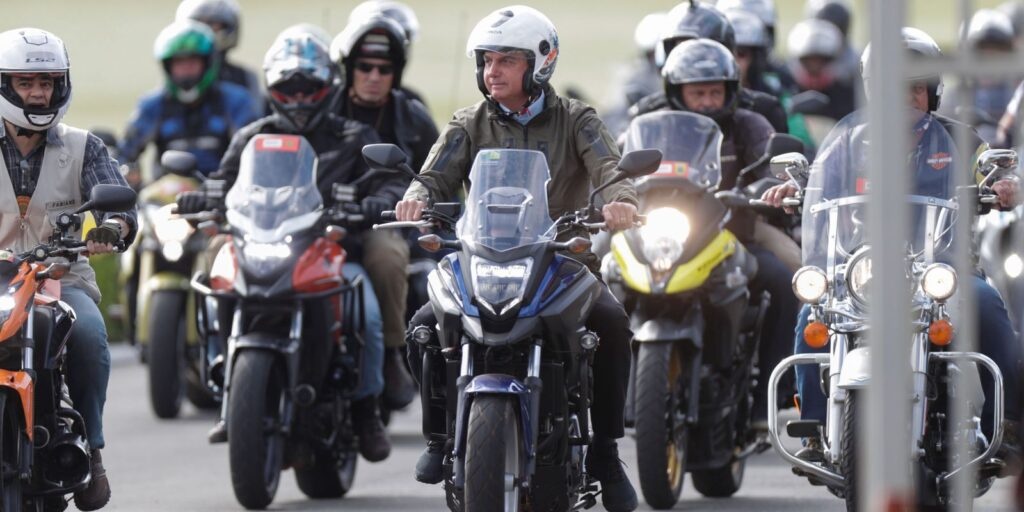 O presidente Jair Bolsonaro realizou um passeio de moto de aproximadamente 1 hora em homenagem ao Dia das Mã...
