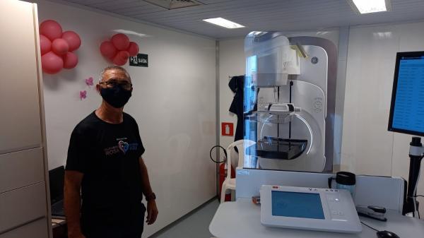 A estrutura está estacionada em frente ao Ambulatório Multiprofissional de Especialidades, na Avenida Brasil