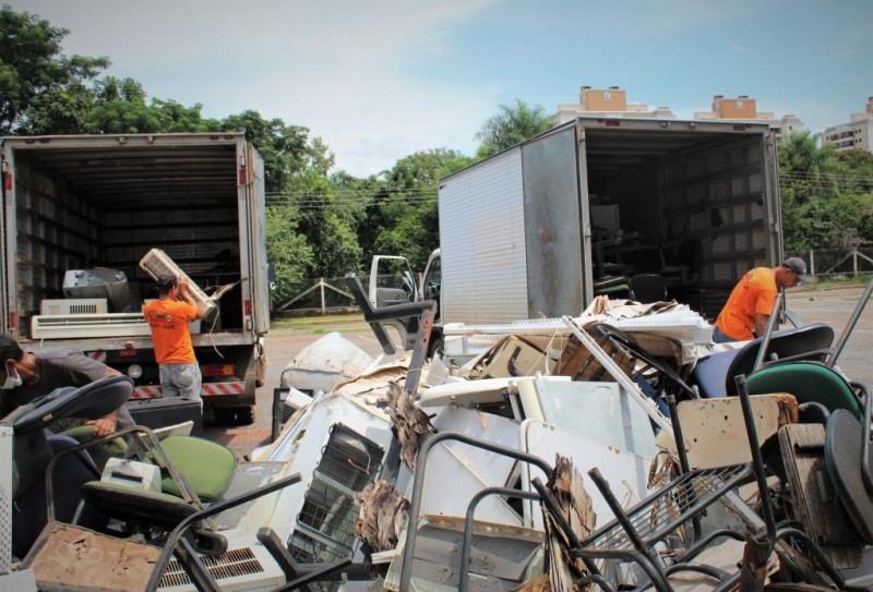 Entre os itens que não eram mais utilizados estavam mesas, cadeiras, lâmpadas, aparelhos de ar condicionado, longarinas, produtos de informática, bebedouros, armários e outros