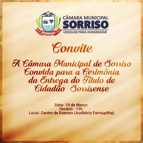 Câmara fará entrega de títulos de Cidadão Sorrisense no sábado (19)