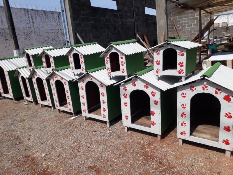 Reeducandos fabricam casas de pets de madeira para doar às instituições e famílias carentes