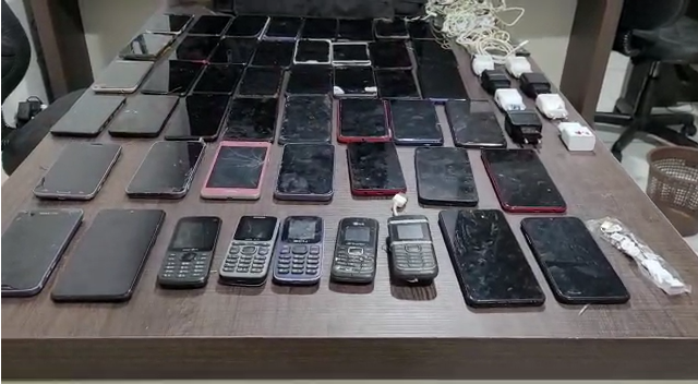 Também foram apreendidos 63 chips de diferentes operadores de telecomunicação, 10 carregadores, oito fones de ouvido e uma bateria