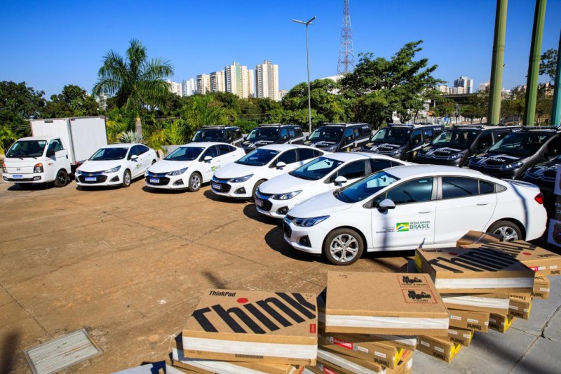 A entrega simbólica dos veículos e demais itens, que já estão sendo distribuídos para as delegacias de todo estado, ocorreu na Praça das Bandeiras em Cuiabá