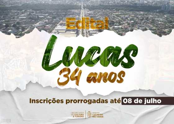 Cultura prorroga inscrições do edital “Lucas 34 anos” para o dia 08 de julho