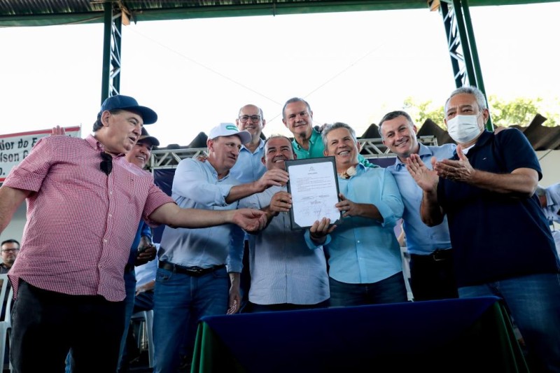 Governador Mauro Mendes assinou convênios com a Prefeitura de Guiratinga para construção de uma ponte de concreto sobre o Rio Prata, na divisa com Pedra Preta, e para levar asfalto novo para ruas e avenidas dos bairros Tancredo Neves, Santa Cruz e Jard