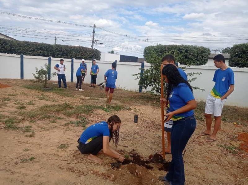 Alunos plantam árvores para sensibilizar comunidade sobre a preservação ambiental
