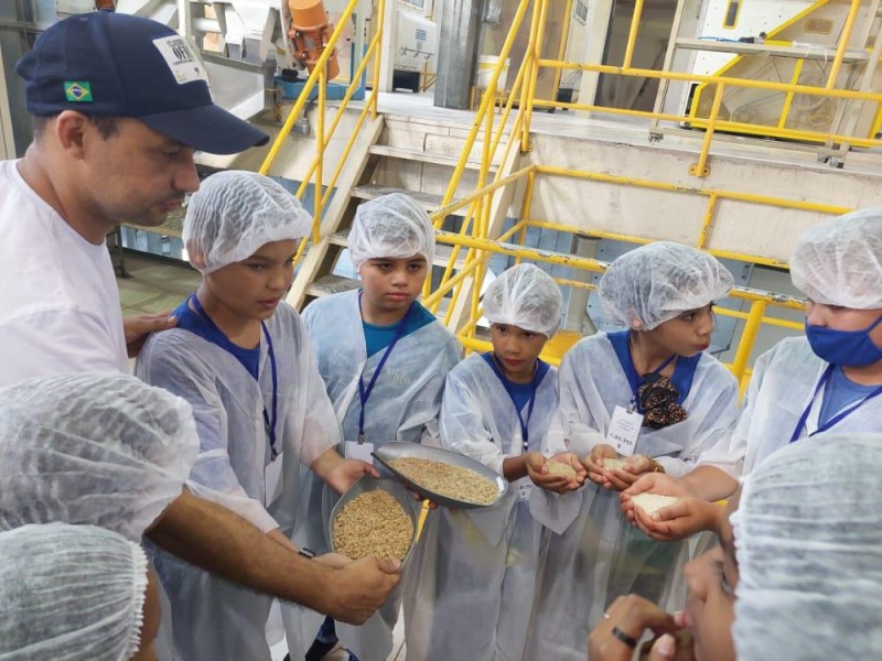 Alunos da Escola Estadual Nossa Senhora de Lourdes acompanharam o processo de industrialização de arroz, feijão e macarrão