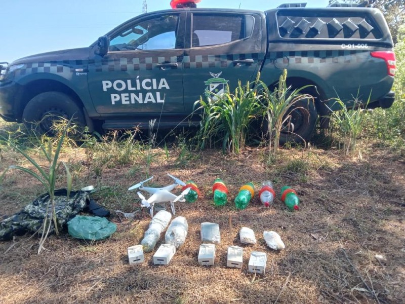 Foram encontrados três pacotes e um tablete de substância análoga à maconha, um drone e acessórios do equipamento eletrônico